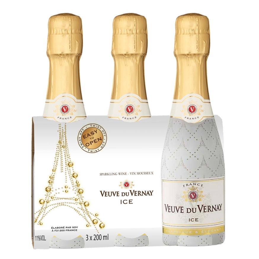 Veuve Du Vernay Ice 8 x 3 Pack (200ml) is a refined and refreshing sparkling wine designed to be enjoyed over ice. Produced and bottled in France, this vibrant wine showcases a pale yellow hue with green tints, offering a delightful combination of fruity, floral, and citrusy notes. With its fine effervescence and mellow profile, it is the perfect choice for those seeking a sophisticated yet easy-going drink. Best served chilled at 8°C, it’s ideal for relaxed moments or festive gatherings.
